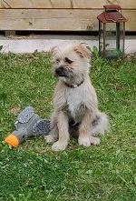 Unser Terriermischling Boomer liebt das RyDog Vitalmenü Huhn.