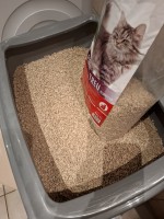 At first, I was concerned whether my little tomcat would accept this natural pine litter, but my worries were unfounded because he accepted it without any problems and it is gentle on his paws. In addition, the pine cat litter is also very economical. I fill the litter tray (approx. 35x50) about 3/4 full and keep the rest to top up. This means that a 4kg bag lasts a good 4-5 weeks.